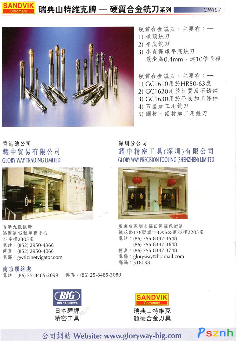 耀中貿易有限公司及耀中精密工具(深圳)有限公司是日本的〝大昭和精機株式會社〞JAPAN〝BIG DAISHOWA SEIKI CO., LTD.〞香港的總代理店,同時是瑞典〝山特維克可樂滿〞SWEDEN〝SANDVIK COROMANT〞中國內地及香港的認可分銷商,兩個品牌都是行業內公認的世界一流著名工具、刀具、量具生產廠家,多年前已經取得國際ISO9000認證,且擁有多項專利發明,為客戶提供超過50,000多種標準規格工具刀具產品。此外;另特別設有專門車間為客戶設計及生產非標工具、刀具、量具。