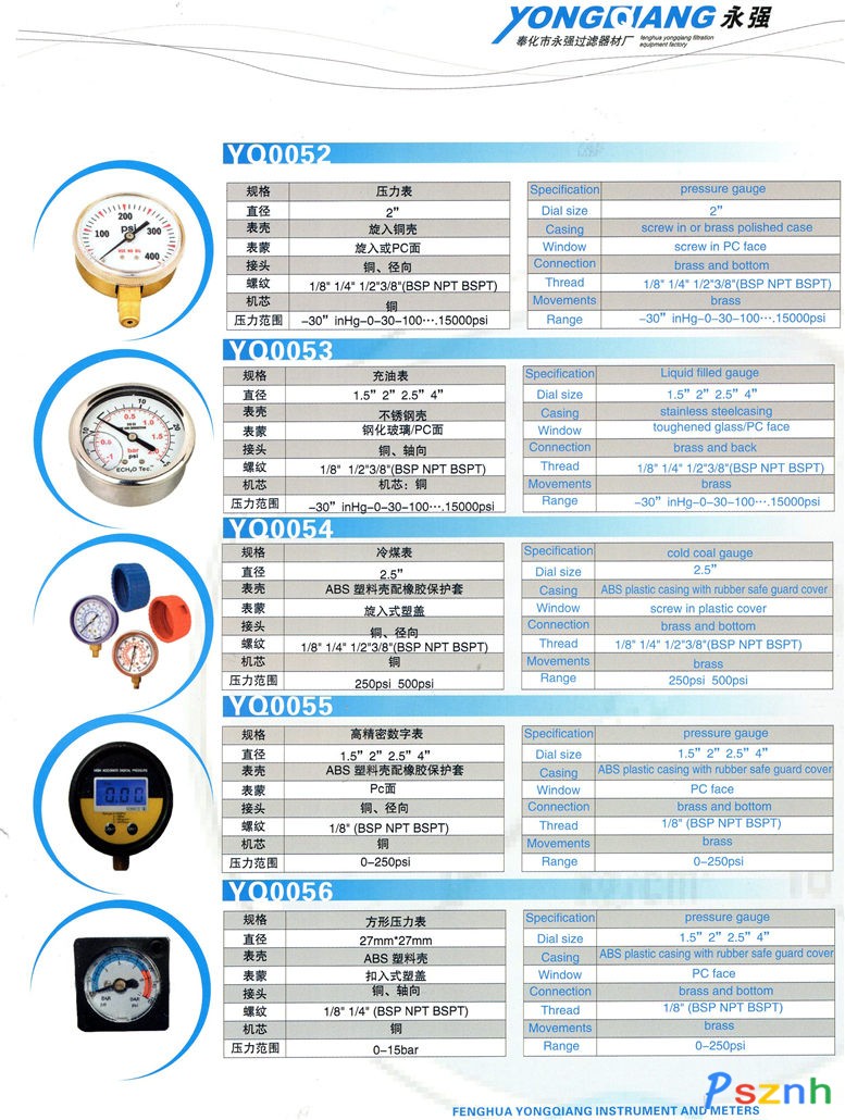 寧波市奉化永強過濾器材有限公司 壓力表 消聲器 壓力表 消聲器 粉末銅套 鋼板銅套