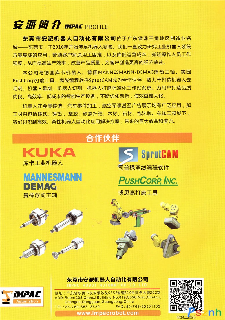 本公司與德國庫卡機器人、德國MANNESMANN-DEMAG浮動主軸、美國PushCorp打磨工具、離線編程軟件SprutCAM成為合作伙伴,致力于打造機器人去毛刺、機器人雕刻、機器人切割、機器人打磨標準化工作站系統。為用戶打造品質優良、高效率、低成本的智能生產設備,不斷優化創新,使效益最大化。