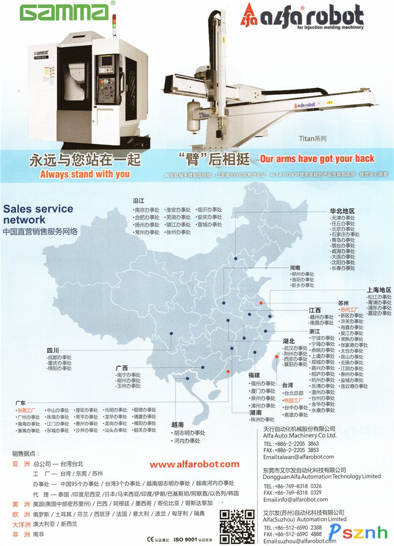 潮陽市天行自動化機械有限公司 Phoenix 系列為斜臂式取出機 CNC伺服橫走型機械手系列 立式塑料射出機專用機械手臂