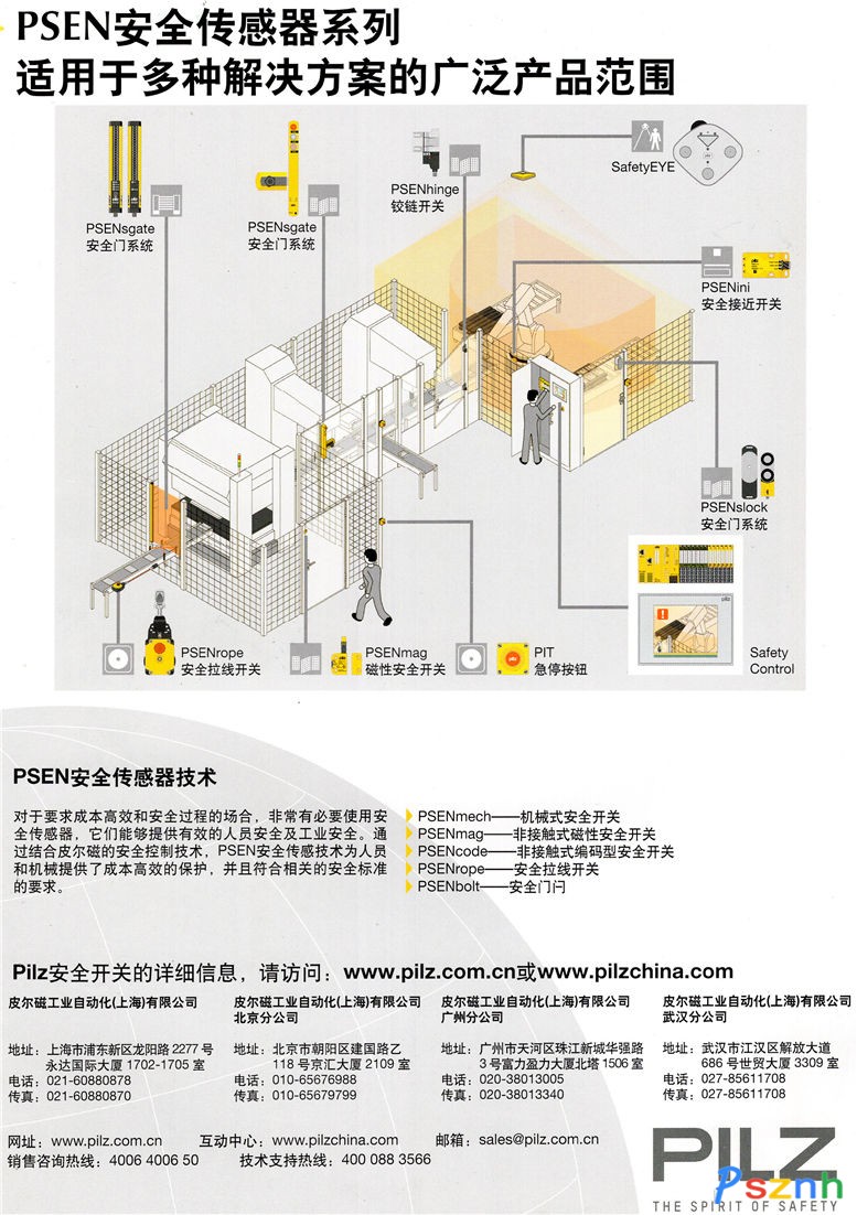Pilz是一家有著65余年歷史積淀的家族企業。我們貼近客戶的傳統在各地區均得到淋漓盡致的展現 - 通過人性化的咨詢交流,絕對靈活、可靠的服務點滴積累客戶的信賴感。全球40家子公司和分支機構及遍布五大洲的銷售合作伙伴無時無刻不在用心服務客戶需求。公司總計有2000多名員工,每一位都堪當安全大使,確保貴公司最大的資產 - 您的員工 - 安全作業,遠離受傷的風險。
