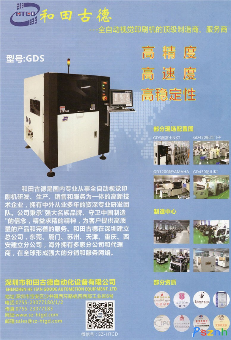 深圳市和田古德自動化設備有限公司于2008年開始研發全自動錫膏印刷機,于2011年正式登記注冊成立和田古德公司,是國內專業從事全自動錫膏視覺印刷機研發,生產,銷售和服務為一體的高新技術企業。公司于2012年推出了"鋼網糾偏"系列印刷機,填補了國內在這一領域的技術空白。結合之前推出的GD系列印刷機,現在公司擁有多款機型,分別應用于SMT,半導體,LED,鋰電池,航天,軍工等高端企業。