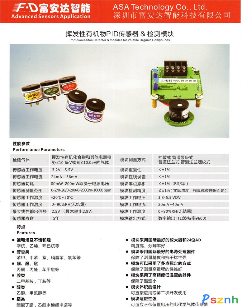 深圳市富安達智能科技有限公司(富安達智能,ASA)創立于2003年,已成為是中國傳感器及整體解決方案的領軍企業,是專業從事國際領先傳感器應用硬件、軟件及相關系統的應用設計、服務和銷售服務的專業系統配套方案提供商,在國內與多所高校和多個研究院所建立了長期緊密的技術合作關系,并與國外多家公司建立了長遠的戰略伙伴關系。 深圳富安達提供:氧氣傳感器(O2),六氟化硫傳感器(SF6),PID傳感器,TVOC傳感器,一氧化碳傳感器(CO),二氧化硫傳感器(SO2),一氧化氮傳感器(NO),CO2紅外傳感器,甲醛傳感器(CH2O),臭氧傳感器(O3),硅烷傳感器(SIH4),氨氣傳感器(NH3),磷化氫傳感器(PH3),硫化氫傳感器(H2S),乙烯傳感器(C2H4),氯氣傳感器(CL2),氫氣傳感器(H2),氯化氫傳感器(HCL),二氧化氮傳感器(NO2),氰化氫傳感器(HCN),過氧化氫傳感器(H2O2),環氧乙烷傳感器(ETO),溴化氫傳感器(HBr),四氯化鈦傳感器(TICL4), 可燃氣體傳感器,紅外光源,紅外探測器,四氫噻吩傳感器(C4H8S),鍺烷傳感器(GeH4),三氯化砷傳感器(AsCl3),三氟化砷傳感器(AsF3),丁硫醇傳感器(C4H10S),二氧化氯傳感器(CLO2),甲胺傳感器(CH3NH2),硫氫甲烷傳感器(CH3SH),硫酰氟傳感器(SO2F2),光氣傳感器(COCL2),四氯化錫傳感器(SnCl4),六氟化鎢傳感器(WF6),乙醇傳感器(C2H6O),一氯甲烷傳感器(CH3CL),三氯甲烷傳感器(CHCL3),四氯甲烷傳感器(CCL4),三聚氟氰傳感器(C3F3N3),異丙醇傳感器(C3H8O),甲醇傳感器(CH4O), 汽車氧傳感器,潛水氧傳感器,有毒氣體傳感器,壓力傳感器。