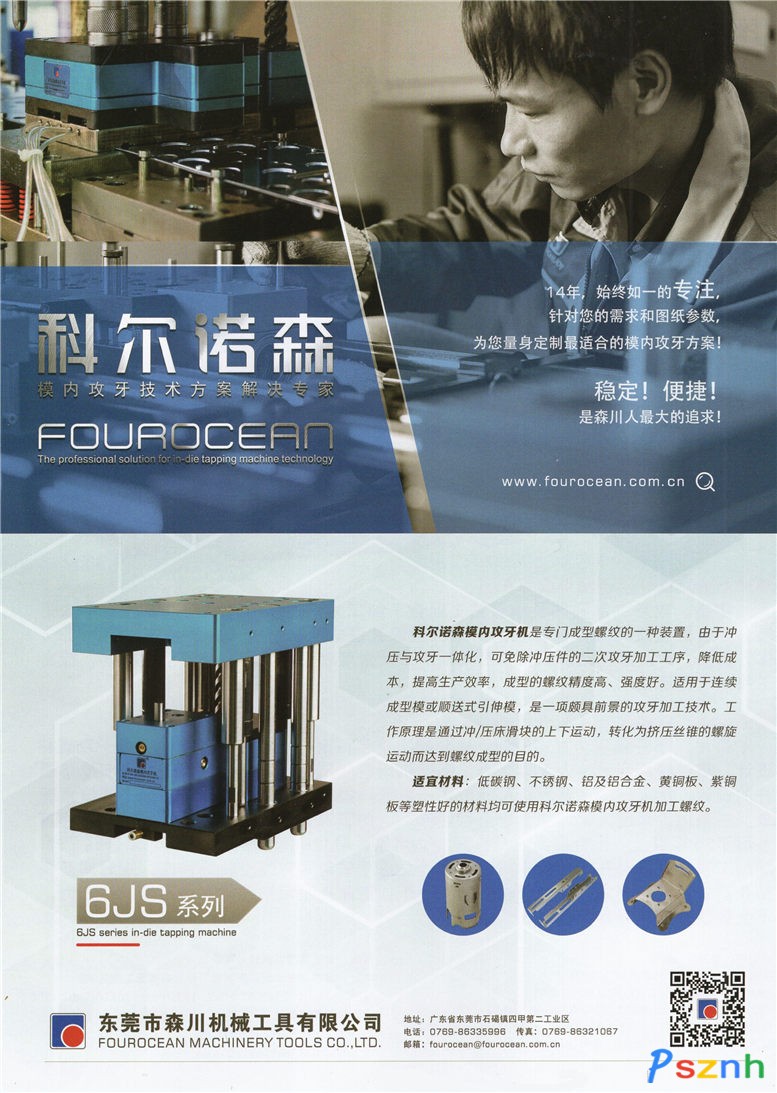 東莞市森川機(jī)械工具有限公司,總部位于東莞市石碣鎮(zhèn),是一家集研發(fā)、生產(chǎn)、銷售“科爾諾森”品牌模內(nèi)攻牙機(jī)和提供沖壓自動(dòng)化系統(tǒng)技術(shù)整合于一體的高新企業(yè)。作為中國(guó)模內(nèi)攻絲技術(shù)先驅(qū)的森川公司。一直以來重視自主研發(fā)和市場(chǎng)的開拓整合,擁有自主知識(shí)產(chǎn)權(quán)的“科爾諾森”品牌及相關(guān)30多項(xiàng)技術(shù)發(fā)明、外觀等專利。在國(guó)內(nèi)模內(nèi)攻牙技術(shù)領(lǐng)域有著影響深遠(yuǎn)的領(lǐng)導(dǎo)地位。