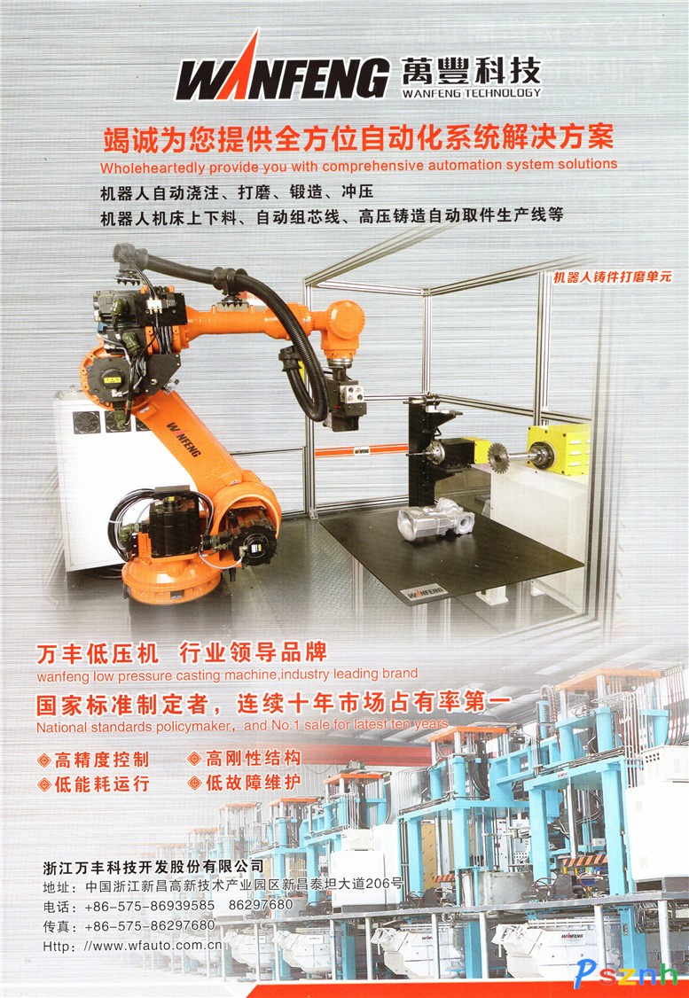 浙江萬豐科技開發股份有限公司是萬豐奧特控股集團下屬全資子公司,坐落于浙江新昌省級高新技術園區,是一家專業從事工業機器人、工業自動化裝備、低壓(差壓、重力)鑄造機的研發與制造,并提供有色合金鑄造交鑰匙工程服務的系統制造商。