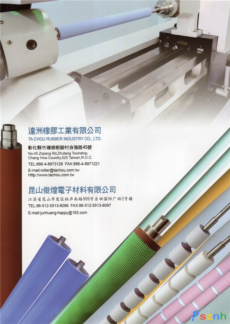 昆山俊煌電子材料有限公司于2008年成立,是臺灣達洲橡膠工業有限公司在中國大陸的子公司,以專業技術從事各式橡膠滾輪、硅膠滾輪、優力膠滾輪之開發制造及相關零組件加工,提供最優質產品給國內外印刷、紡織、造紙、塑膠、輸送等機械廠使用。