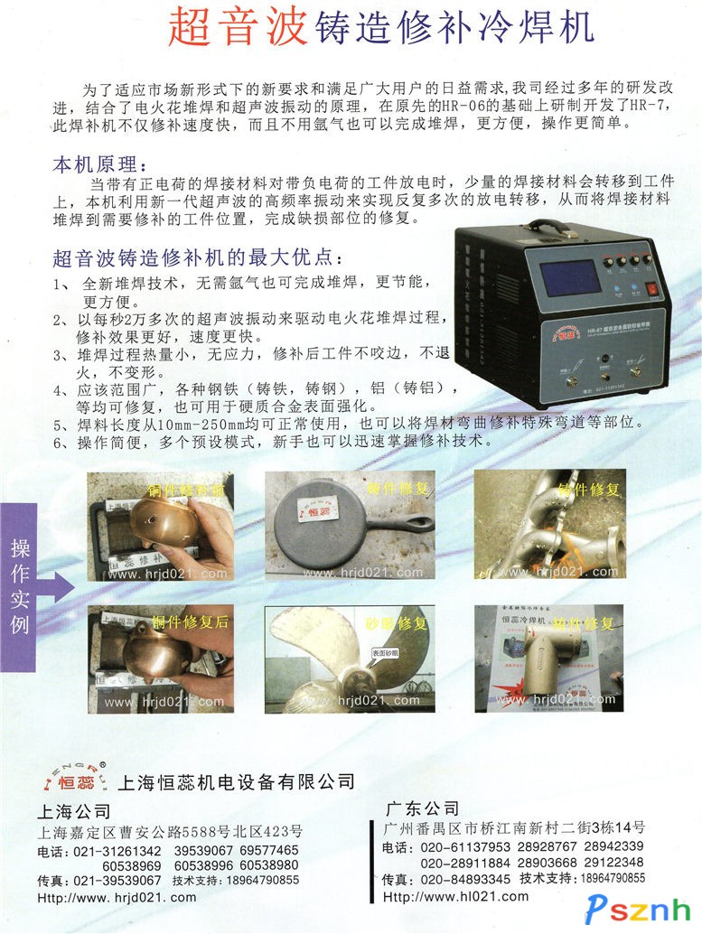 主營產品:冷焊機,超激光焊機,薄板焊接機,廣告字焊接機,臺面板焊接機,櫥柜焊接機,多功能焊接機,金屬修補冷焊機,模具修補冷焊機,鑄造缺陷修補機,超音波修補機,超音波鑄造缺陷修復機等冷焊設備