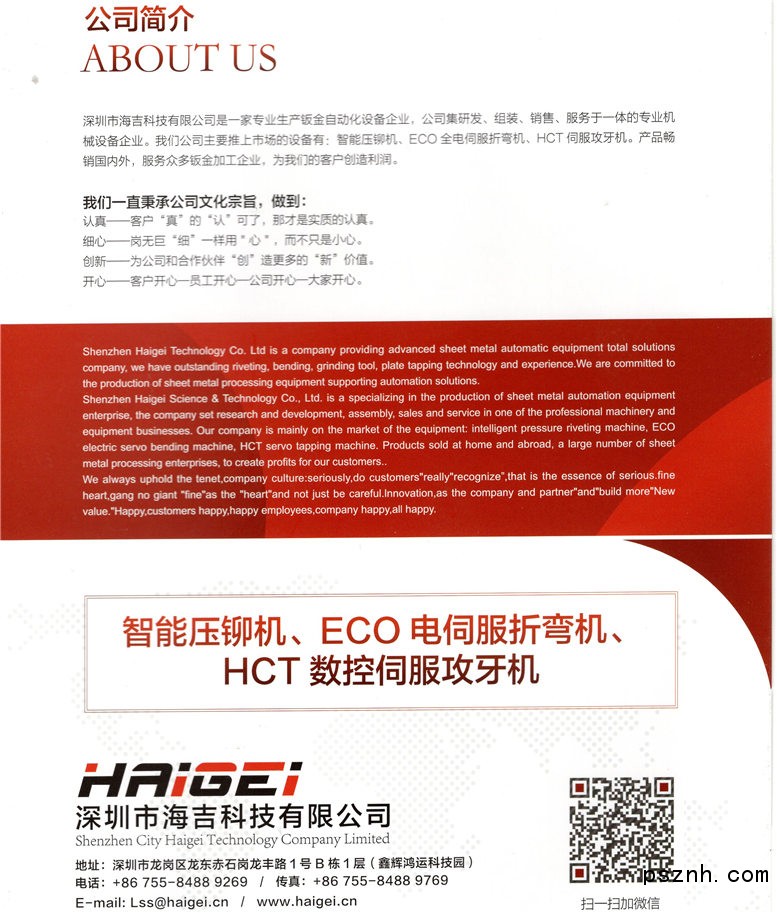 深圳市海吉科技有限公司_全自動液壓鉚釘機_鈑金非標自動化設備_高性能折床模具_高標準的壓鉚螺絲系列_NCT刀具研磨機