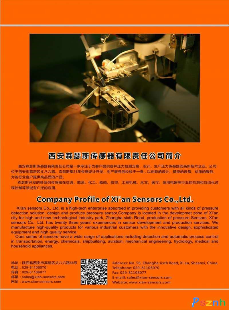 西安森瑟斯傳感器有限責(zé)任公司是一家專注于為客戶提供各種壓力檢測方案,設(shè)計、生產(chǎn)壓力傳感器的高新技術(shù)企業(yè)。公司位于西安市高新區(qū)丈八六路炬光科技園內(nèi)。森瑟斯集多年傳感設(shè)計開發(fā)、生產(chǎn)服務(wù)的經(jīng)驗于一身,以創(chuàng)新的設(shè)計、精良的設(shè)備、優(yōu)質(zhì)的服務(wù)、為各行業(yè)客戶打造高品質(zhì)的產(chǎn)品。
