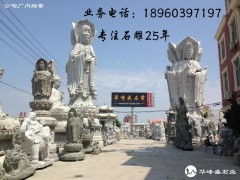石雕四面觀音和三面觀音相比,多出了一個面。分別正立于東南西北四個方向。東面觀音手持水瓶,象征著福音。南面觀音手持蓮花,象征和平平安。西面觀音手持佛珠,象征著慈悲。背面觀音手持經篋,象征智慧,傳承等美好寓意。石雕四面觀音像整體顯得莊重而慈悲。寶像頂部是以《阿彌陀佛經》中描述的華美佛國西方極樂世界為意象而建造的橢圓塔形立體浮雕,浮雕頂部是三面同身的阿彌陀佛像。寶像底部是借鑒明清水墨畫中精妙的蓮花造型而造的蓮臺,蓮臺下層的須彌基座四周刻以佛國的各式花紋浮雕,暗喻觀世音菩薩救濟六道蕓蕓眾生的慈悲大愿。
