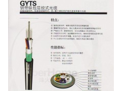 鋼帶縱包層絞式光纜(GYTS) 金屬加強構件、松套層絞填充式、鋼-聚乙烯粘結護套的通信用室外光纜 特點:·全截面阻水結構,雙面覆膜鋼帶縱包,確保良好的阻水防潮性能·松套管內填充特種油膏,對光纖進行關鍵性保護·磷化鋼絲中心加強構件模量高、耐腐蝕·產品使用壽命30年以上性能指標;應用范圍:適用于長途通信和局間通信;敷設方式:架空、管道;工作溫度:-40~+70℃;彎曲半徑:靜態10倍纜徑、動態20倍纜徑。