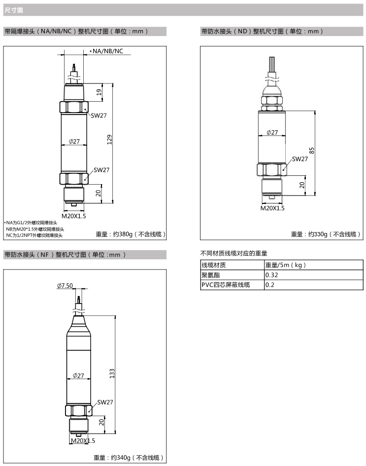- 4-20mA,4-20mA+HART,0.5-4.5VDC