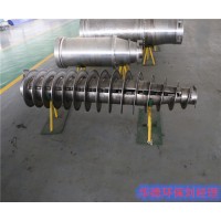 濟(jì)寧華德環(huán)保設(shè)備服務(wù)有限公司為您提供山東臥螺離心機(jī)廠家維修保養(yǎng)公司。臥螺離心機(jī)是一種螺旋卸料沉降離心機(jī)。主要由高轉(zhuǎn)速的轉(zhuǎn)鼓、與轉(zhuǎn)鼓轉(zhuǎn)向相同且轉(zhuǎn)速比轉(zhuǎn)鼓略低的帶空心轉(zhuǎn)軸的螺旋輸送器和差速器等部件組成。當(dāng)要分離的懸浮液由空心轉(zhuǎn)軸送入轉(zhuǎn)筒后,在高速旋轉(zhuǎn)產(chǎn)生的離心力作用下,立即被甩入轉(zhuǎn)鼓腔內(nèi)。高速旋轉(zhuǎn)的轉(zhuǎn)鼓產(chǎn)生強(qiáng)大的離心力把比液相密度大的固相顆粒甩貼在轉(zhuǎn)鼓內(nèi)壁上,形成固體層(因?yàn)榄h(huán)狀,稱為固環(huán)層);水分由于密度較小,離心力小,因此只能在固環(huán)層內(nèi)側(cè)形成液體層, 稱為液環(huán)層。由于螺旋和轉(zhuǎn)鼓的轉(zhuǎn)速不同,二者存在有相對(duì)運(yùn)動(dòng)即轉(zhuǎn)速差,利用螺旋和轉(zhuǎn)鼓的相對(duì)運(yùn)動(dòng)把固環(huán)層的污泥緩慢地推動(dòng)到轉(zhuǎn)鼓的錐端,并經(jīng)過干燥區(qū)后,由轉(zhuǎn)鼓 圓周分布的出口連續(xù)排出;液環(huán)層的液體則靠重力由堰口連續(xù)“溢流”排至轉(zhuǎn)鼓外,形成分離液。