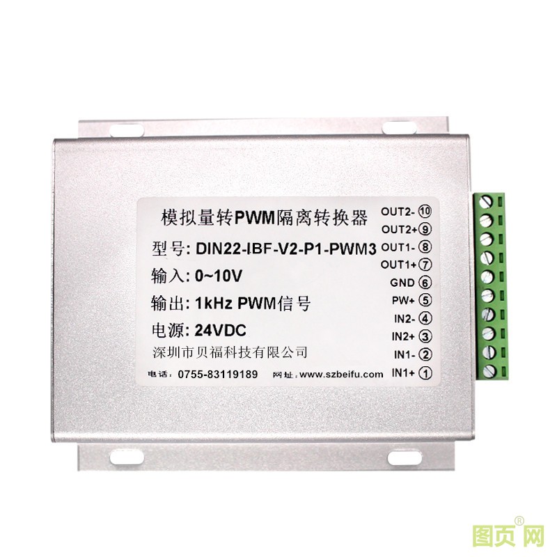 例2:一進兩出 輸入信號:0-10V 供電電源:12V 輸出信號:100KHz PWM 型號:DIN12 IBF V2-P2-PWM5