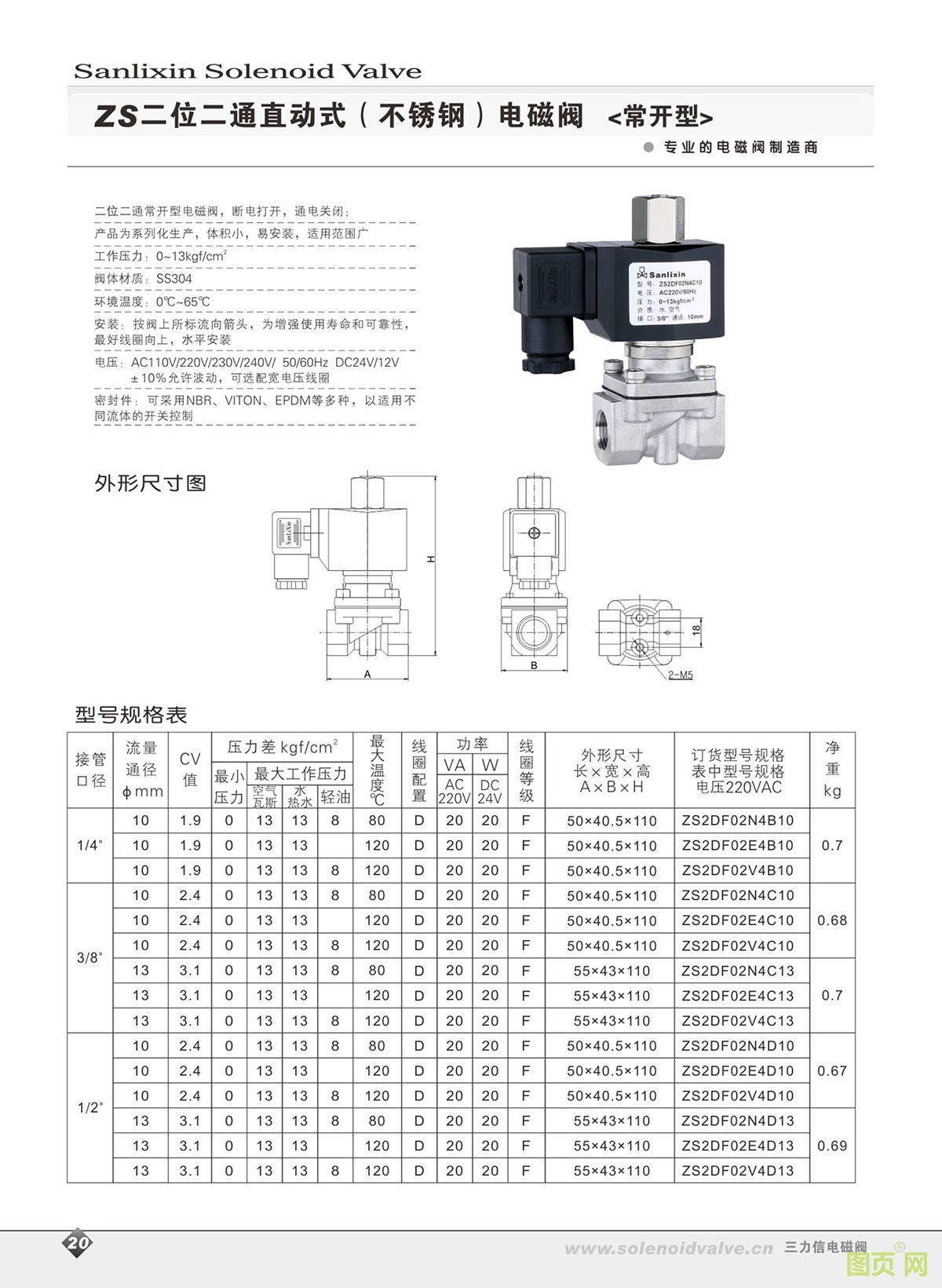 本網頁所展示的有關【三力信_ZS 二位二通直動式(不銹鋼)電磁閥/常開型】的信息/圖片/參數等由的會員【余姚市三力信電磁閥有限公司 】提供,由圖頁網會員【余姚市三力信電磁閥有限公司 】自行對信息/圖片/參數等的真實性、準確性和合法性負責,本平臺(本網站)僅提供展示服務,請謹慎交易,因交易而產生的法律關系及法律糾紛由您自行協商解決,本平臺(本網站)對此不承擔任何責任。您在本網頁可以瀏覽【三力信_ZS 二位二通直動式(不銹鋼)電磁閥/常開型】有關的信息/圖片/價格等及提供 【三力信_ZS 二位二通直動式(不銹鋼)電磁閥/常開型】的商家公司簡介、聯系方式等信息。