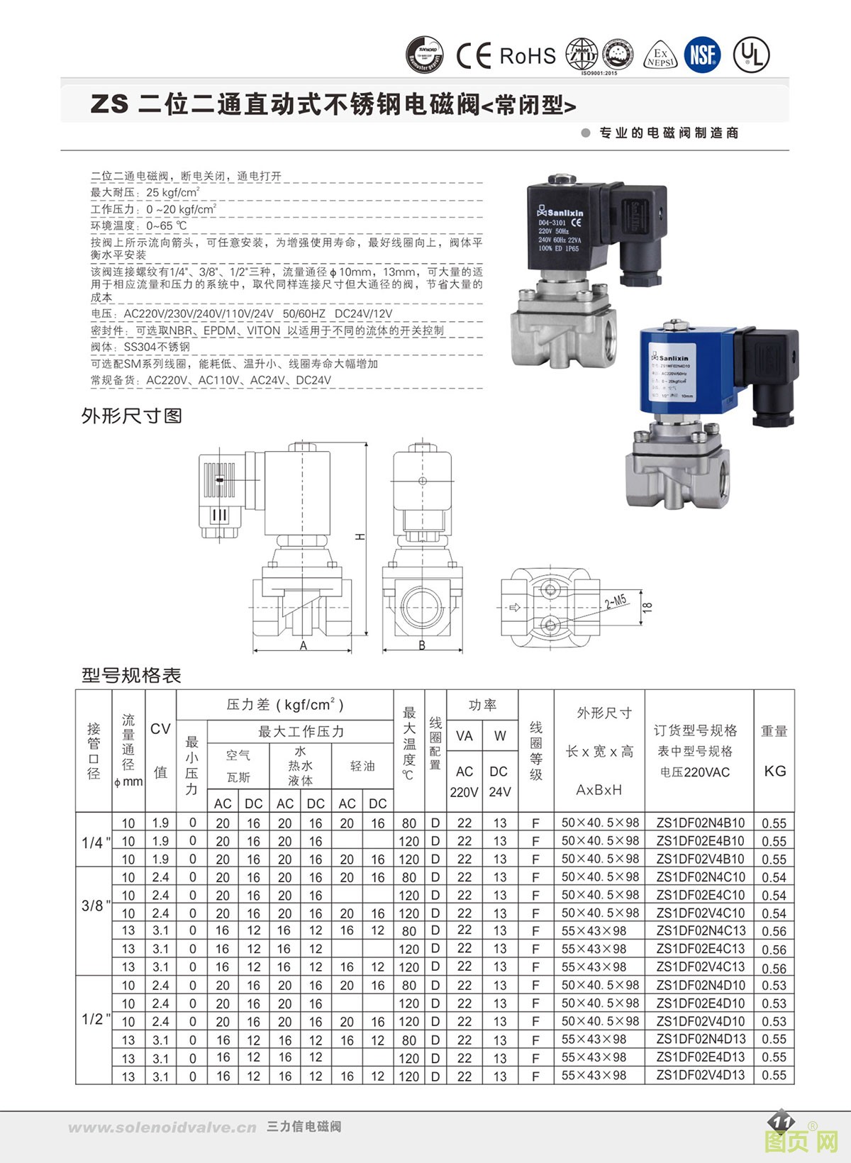 三力信_(tái)ZS二位二通直動(dòng)式電磁閥/常