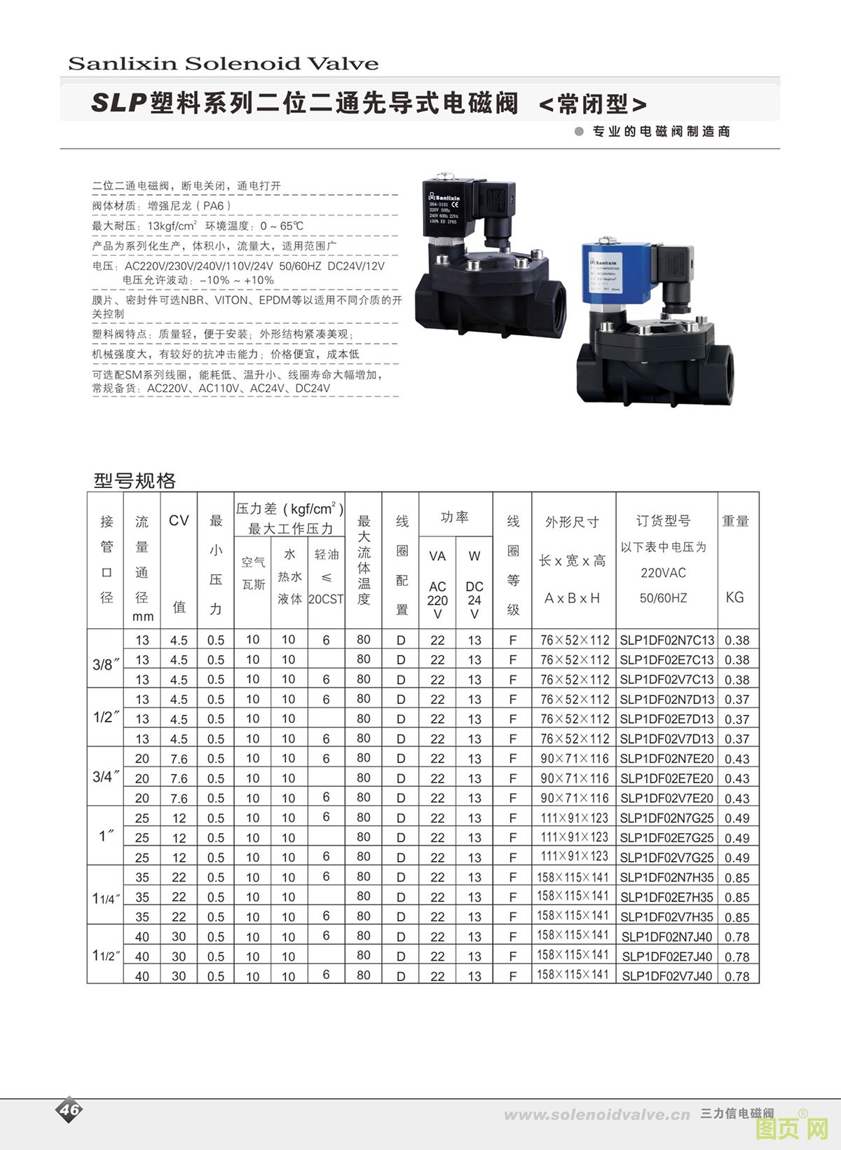 三力信_(tái)SLP塑料系列二位二通先導(dǎo)式電磁閥/常閉型_電磁閥