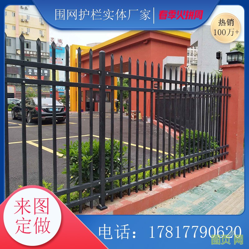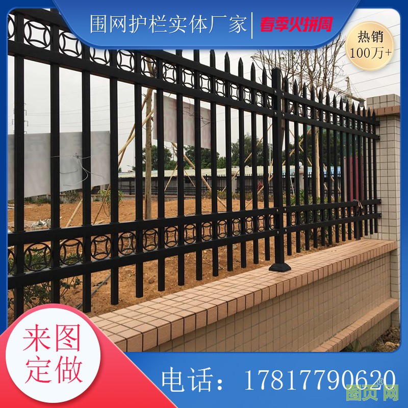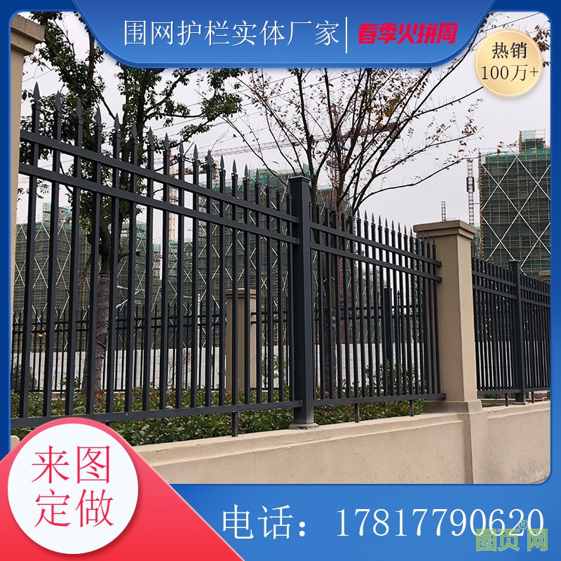 鐵藝護欄的材料以及常見規格與A型鐵藝護欄的一致。兩者的區別就是橫梁的數量不同。
