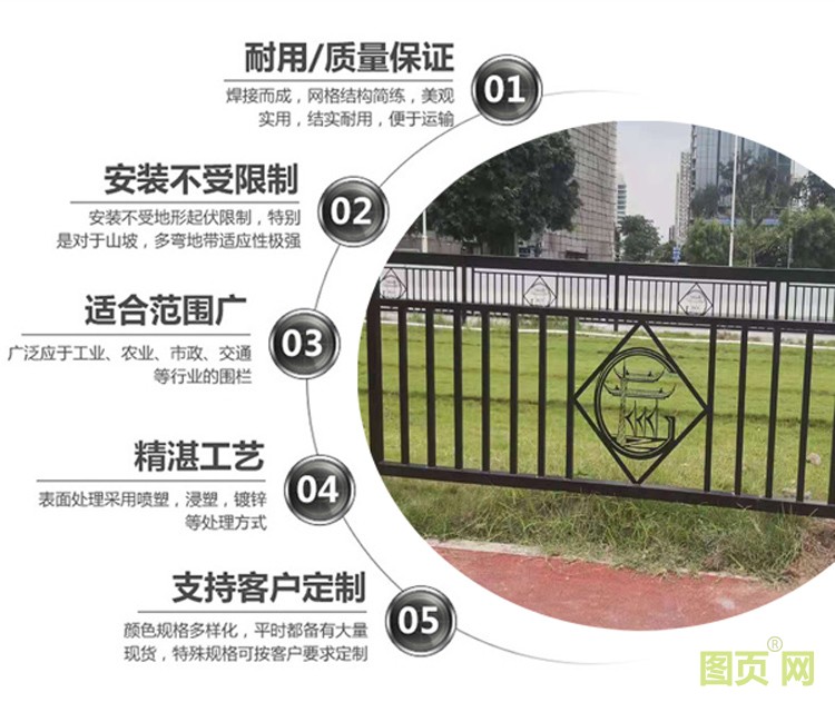 【適用范圍】適用城市交通要道、高速公路中間綠化隔離帶、橋梁、二級公路、鄉鎮公路及各公路收費口、公園、停車場等的隔離。