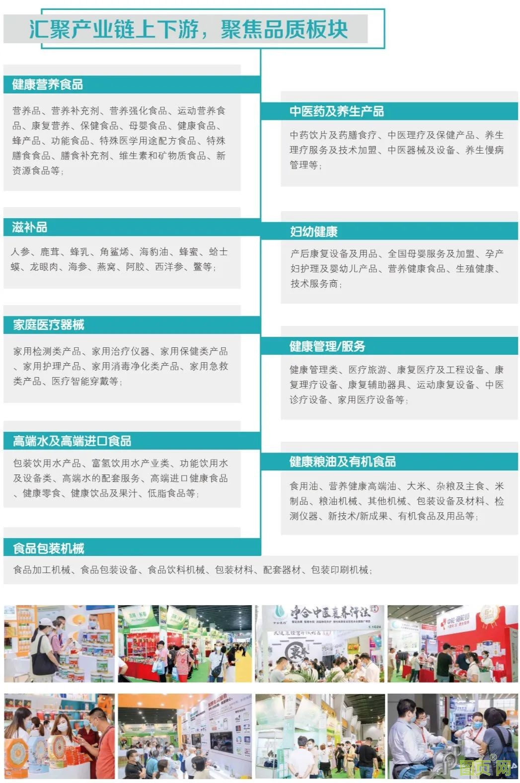 健康營養食品|特殊膳食食品|中醫藥及養生產品|滋補品|婦幼健康|家庭醫療器械|健康管理/服務|高端水及進口食品|健康糧油及有機食品|食品包裝機械