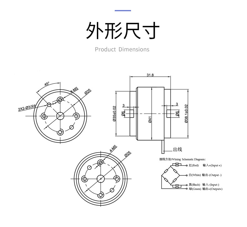 | 電氣連接方式 | 紅/E+,黑/E-,綠/S+,白/S- |