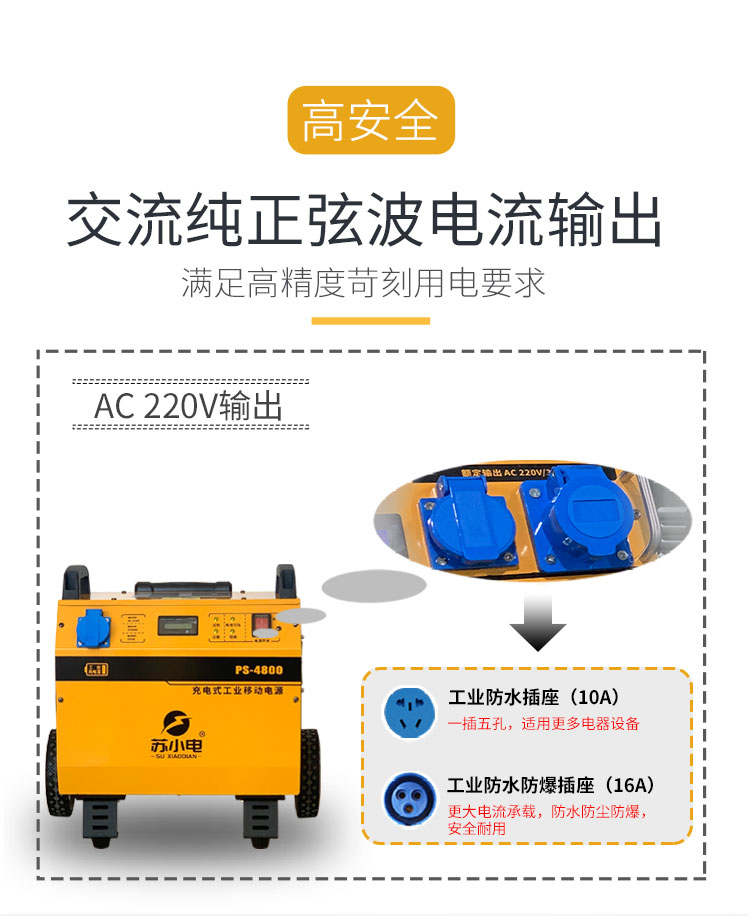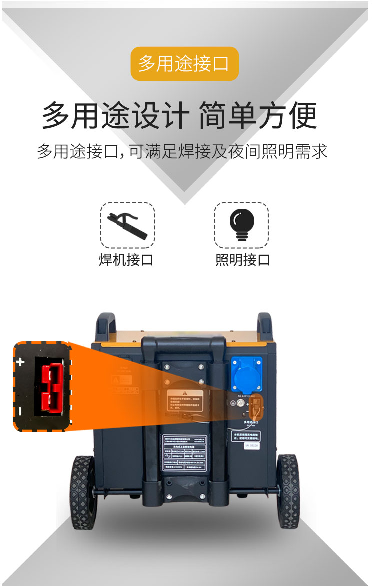 220V/3500W大功率電源,輸出穩(wěn)定,用于電鎬、切割機(jī)、角磨機(jī)等電動工具現(xiàn)場供電;