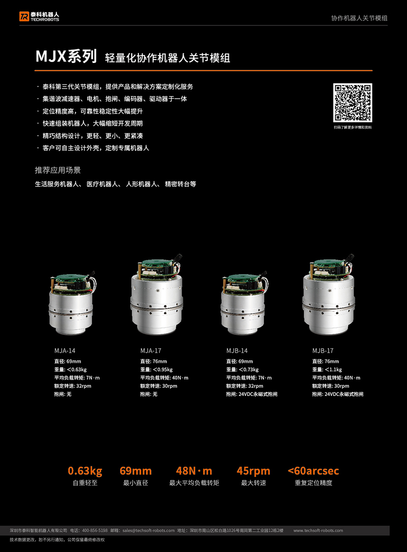 本網頁所展示的有關【MJX系列輕量化機器人關節模組|支持定制|源頭廠家】的信息/圖片/參數等由的會員【深圳市泰科智能機器人有限公司 】提供,由圖頁網會員【深圳市泰科智能機器人有限公司 】自行對信息/圖片/參數等的真實性、準確性和合法性負責,本平臺(本網站)僅提供展示服務,請謹慎交易,因交易而產生的法律關系及法律糾紛由您自行協商解決,本平臺(本網站)對此不承擔任何責任。您在本網頁可以瀏覽【MJX系列輕量化機器人關節模組|支持定制|源頭廠家】有關的信息/圖片/價格等及提供 【MJX系列輕量化機器人關節模組|支持定制|源頭廠家】的商家公司簡介、聯系方式等信息。