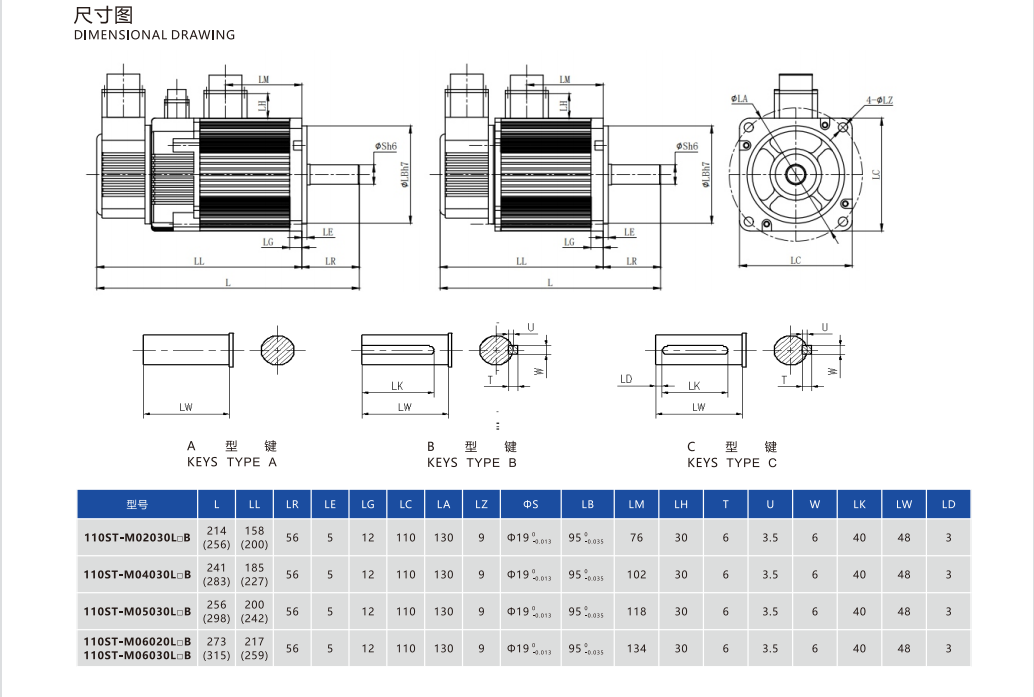 ⑽ 軸伸端鍵槽代碼,無鍵無代碼。