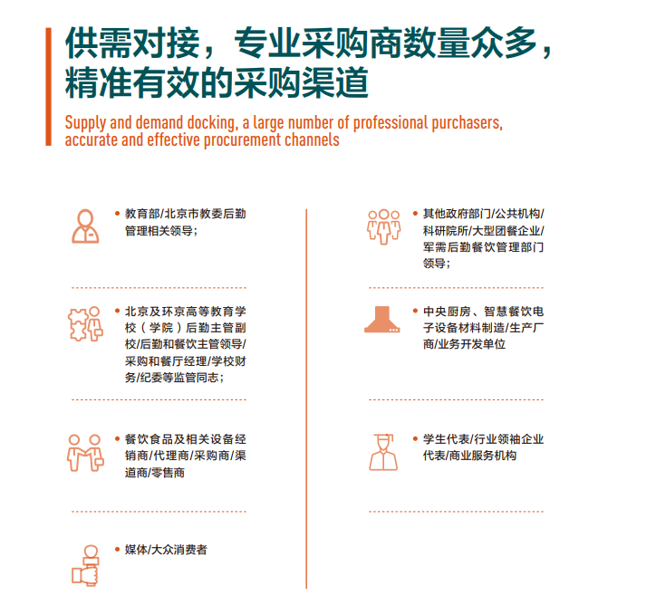 大會將邀請高校后勤餐飲主管領導、 專家、 關鍵崗位老師, 就高校餐飲關注點觀展、 對發展獻言獻策、 關注行業動態和發展趨勢。