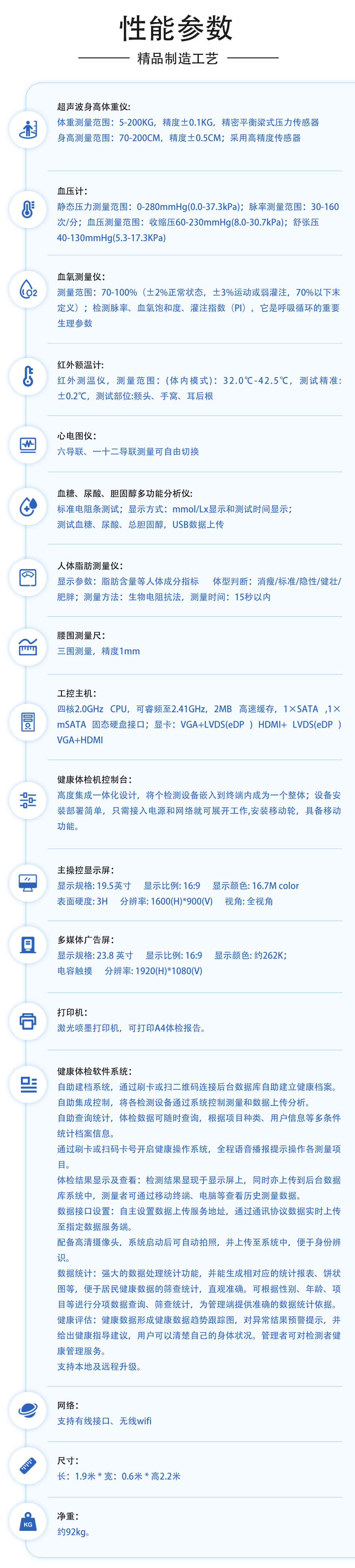 1、便捷性:上正華瑞健康小屋一體機(jī)設(shè)置在社區(qū)等公共場(chǎng)所,居民無(wú)需前往醫(yī)院或?qū)I(yè)的體檢機(jī)構(gòu),就能在家門(mén)口完成體檢。這種近距離的體檢服務(wù),大大節(jié)省了居民的時(shí)間和交通成本,提高了體檢的便捷性。