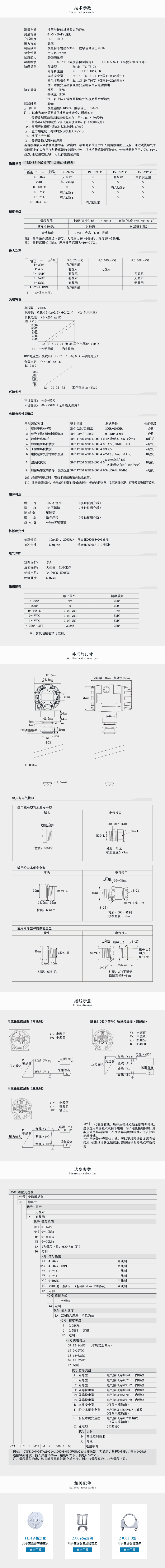 輸出: 4~20mA、4~20mA HART、RS485、0~ 10VDC、0~5VDC、1~ 5VDC