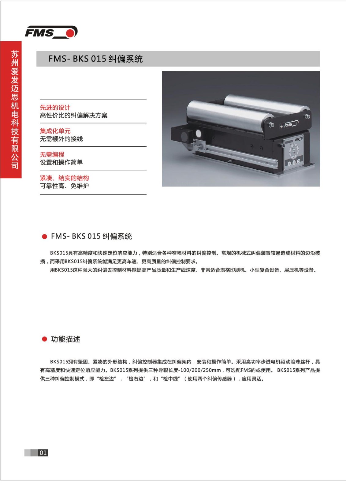 BKS 015具有高精度和快速定位響應能力,特別適合各種窄幅材料的糾偏控制。常規的機械式糾偏裝置較易造成材料的邊沿破損,蘇州愛發邁思機電科技有限公司而采用BKS015糾偏系統能滿足更高車速、更高質量的糾偏控制要求。