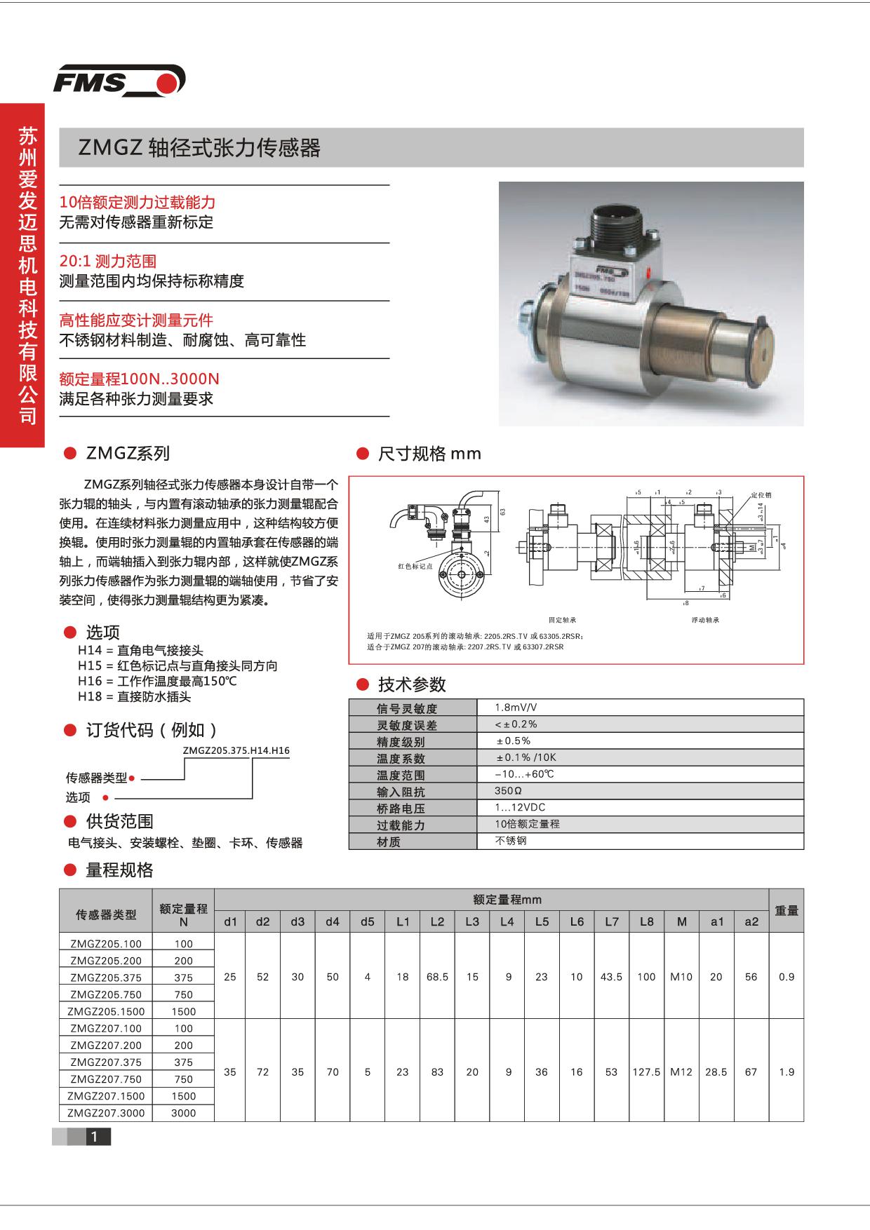 ZMGZ 系列軸徑式張力傳感器本身設計自帶一個張力輥的軸頭,與內置有滾動軸承的張力測量輥配合使用。