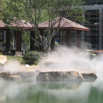 霧森系統(tǒng)將水霧化后,噴灑范圍廣、出霧均勻,且水霧的懸停時間延長,使空氣濕度加大,可有效減少浮塵的發(fā)生,因此可節(jié)省大量的人力、物力及水資源。噴霧安裝時可利用景觀,假山,綠植等,不需另外再布設,因此施工時工程量小。
