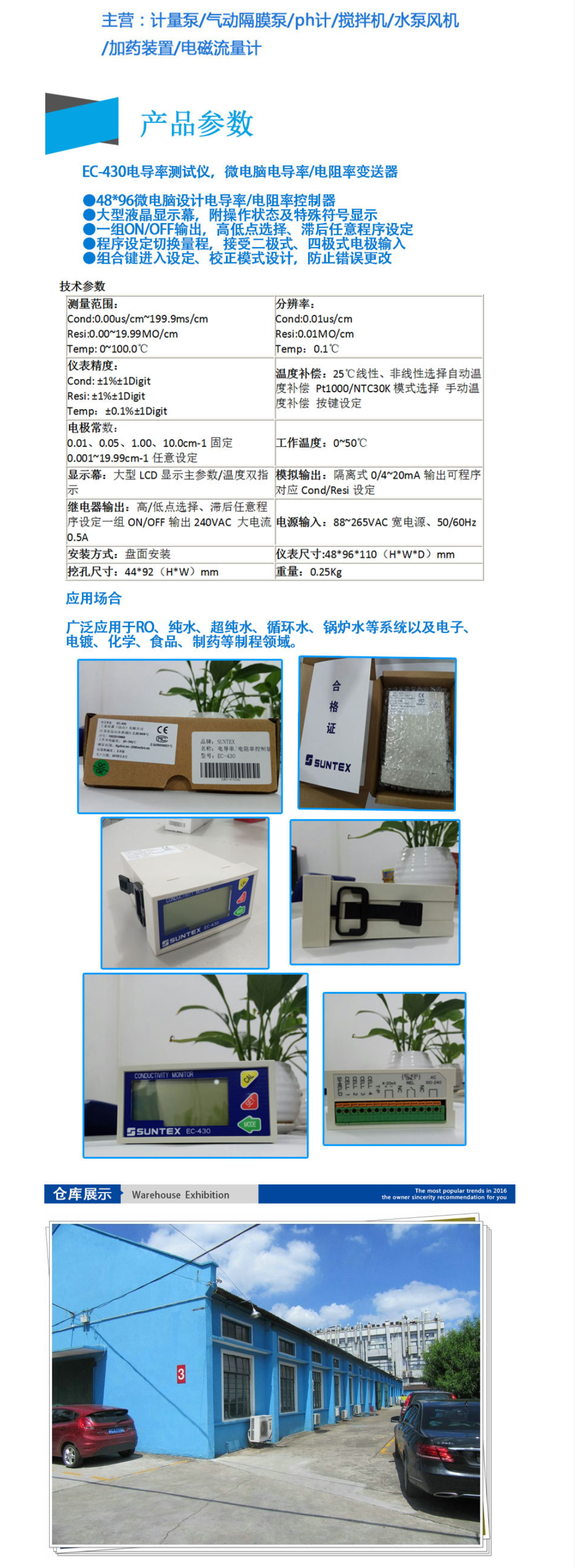 本網頁所展示的有關【SUNTEX水質監(jiān)測儀在線EC-430電導率控制儀/變送器】的信息/圖片/參數等由的會員【上海闊思電子有限公司 】提供,由圖頁網會員【上海闊思電子有限公司 】自行對信息/圖片/參數等的真實性、準確性和合法性負責,本平臺(本網站)僅提供展示服務,請謹慎交易,因交易而產生的法律關系及法律糾紛由您自行協商解決,本平臺(本網站)對此不承擔任何責任。您在本網頁可以瀏覽【SUNTEX水質監(jiān)測儀在線EC-430電導率控制儀/變送器】有關的信息/圖片/價格等及提供 【SUNTEX水質監(jiān)測儀在線EC-430電導率控制儀/變送器】的商家公司簡介、聯系方式等信息。