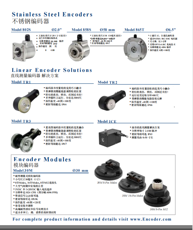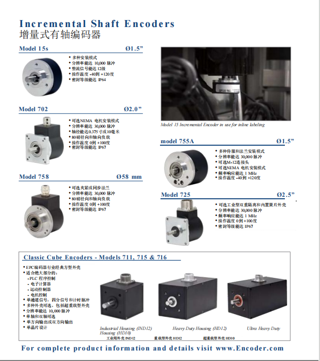 EPC (Encoder Products Company) 編碼器產品公司成立于1969年,是一家全球性的光電編碼器生產商,生產全套的編碼器為廣大工業用戶服務。EPC的編碼器產品被廣泛應用于:伺服和步進電機的驅動控制,運動、位置和速度控制和反饋,電子計數器,自動化機器及工具,車床、磨床和CNC機器,裝配、包裝、切割及輸送設備,轉床和傳送帶,電梯控制和堆料機,數碼彩繪機和醫療儀器等等。EPC在英國亦有分廠,負責歐洲的生產、銷售。